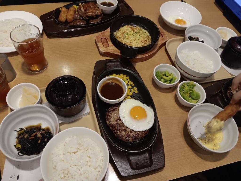 Gusto is technically “fast food” but of a quality we’d never get at the states. This time we went with delcious hanbaga, chicken, and steak served along with a perfectly fried egg, rice, miso soup, and pickled seaweed.