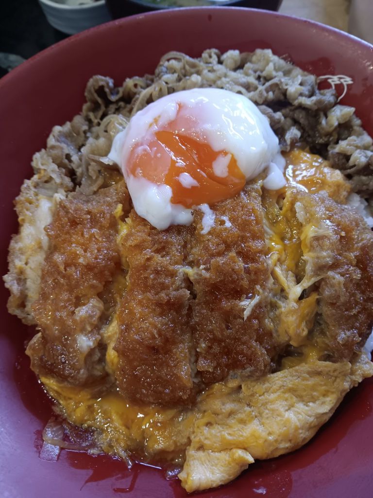 Between the three of us, we had the beef strips, crispy breaded chicken, and pork katsu, and all were solid meals. The perfect soft-boiled egg was the cherry on top.